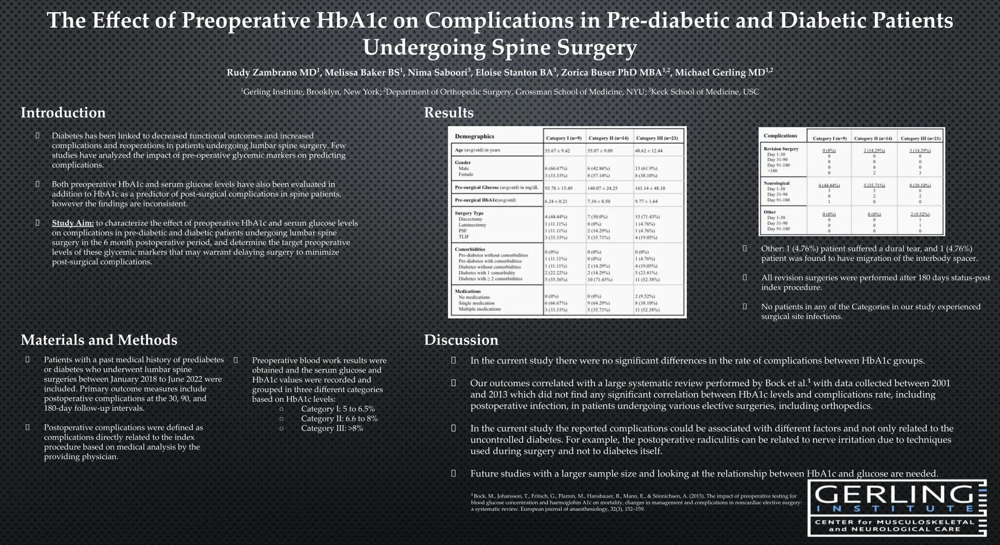 The Effect of Preoperative HbA1c on Complications in Pre-Diabetic and Diabetic Patients Undergoing Spine Surgery